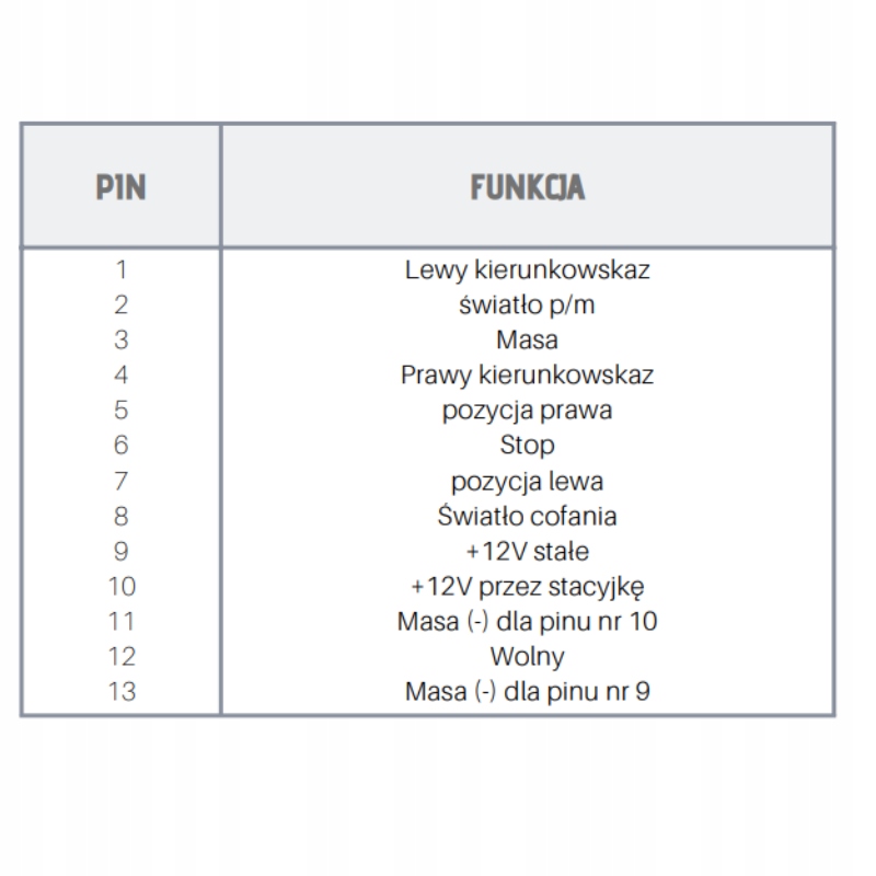 - Podłączenie i zasilanie ciężarówki, odpowiednie do wyświetlania sygnału przyczepy